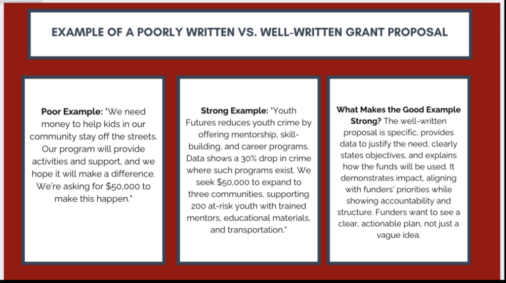 No two grants are the same, and each funder has different goals, priorities, and requirements. Some funders focus on measurable impact and data, while others prioritize storytelling and community engagement. Tailoring applications to each grant opportunity increases your chances of success. Always read the guidelines carefully, follow instructions, and avoid submitting the same generic proposal to multiple funders.